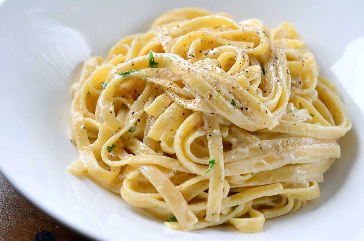 Served with Fettuccine Pasta, Mushroom, Pesto Sauce and Chicken Pieces.